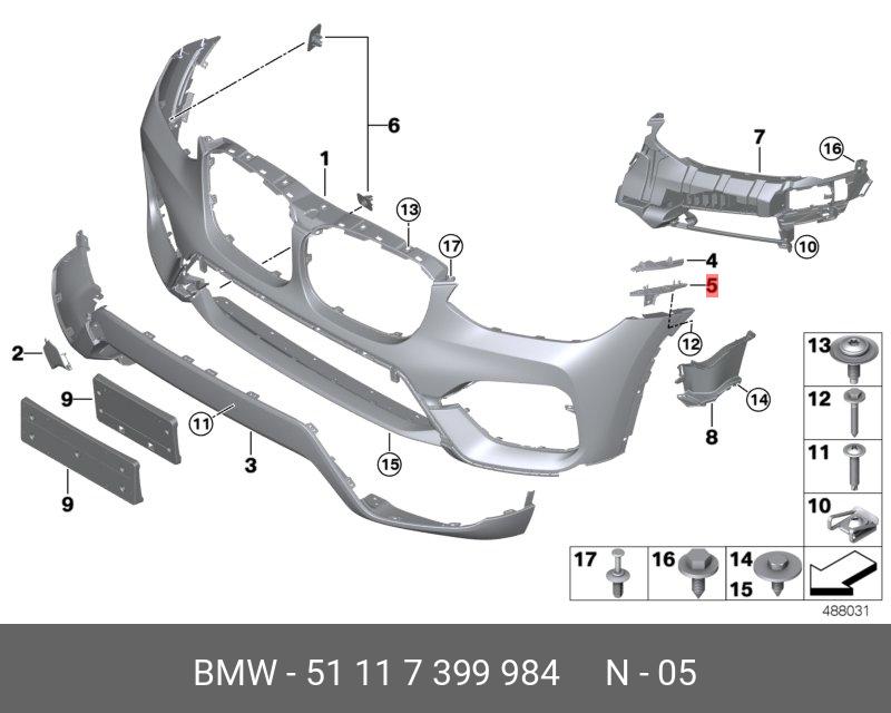 Maintain the integrity and appearance of your BMW's front bumper with this genuine right lower bumper guide. Designed specifically for X3 and X4 models, this component ensures that your bumper is correctly aligned and securely attached. Properly fitted bumper guides are essential for the overall structural integrity of the front end, contributing to both safety and aerodynamics. This part is manufactured to meet BMW's high standards for quality and durability, guaranteeing a precise fit and long-lasting performance. Replacing a damaged or missing bumper guide with this genuine BMW part will help restore your vehicle's original look and functionality. It is a crucial element for ensuring your bumper components work together as intended.